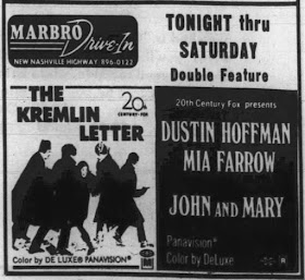Part 20 of an ongoing series listing every movie that played at the Marbro Drive-In once located in Murfreesboro, Tennessee. Today's post covers April 1971 through June 1971.