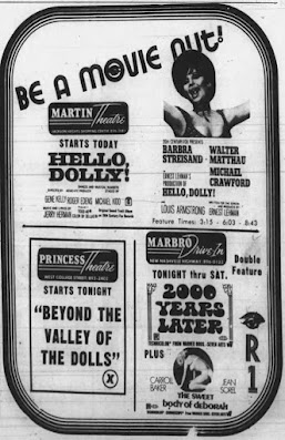 Here's what played at the Martin Theatre located at Jackson Heights Shopping Center, Murfreesboro, Tennessee from July through December 1970. The ads come from the Daily News Journal.
