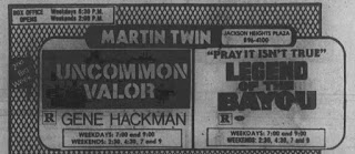 Here's what played at the Martin Twin located at Jackson Heights Shopping Center, Murfreesboro, Tennessee from January 1984 through June 1984. The month of April would see the Martin Twin expand to 4 screens to become the Martin Four. The ads come from the Daily News Journal. Some trailers thrown in for good measure. It now becomes very difficult to keep up with run dates for the films so you will often see I have only listed the first day a film (of films) begin their run.
